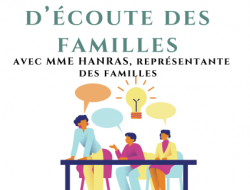 PS: Si vous avez des questions et suggestions , une permanence d'écoute des familles aura lieu le samedi 15 mars de 14H30 à 17H30 au salon des familles avec Mme HANRAS , représentante des familles