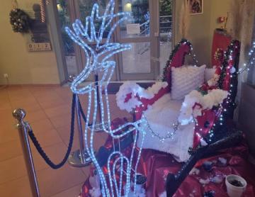 Christelle, responsable hébergement, sera présente le 25 décembre pour célébrer Noël avec vos proches. Elle revêtira son plus beau costume de Mère Noël pour assurer la distribution de cadeaux au pied du magnifique traineau construit par ses soins pour l’occasion 🎄.