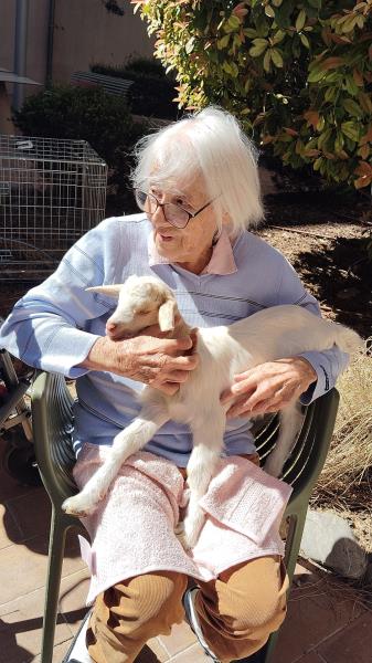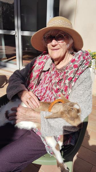 En ce jour, la résidence Pasteur a eu le privilège d’accueillir la ferme pédagogique de Laure, « Les Chevrettes de Malo ». À cette occasion, cinq jeunes biquettes, récemment nées, ont été installées dans le patio de l’établissement. Les résidents ont ainsi eu l’opportunité de participer à leur soin en leur donnant le biberon.